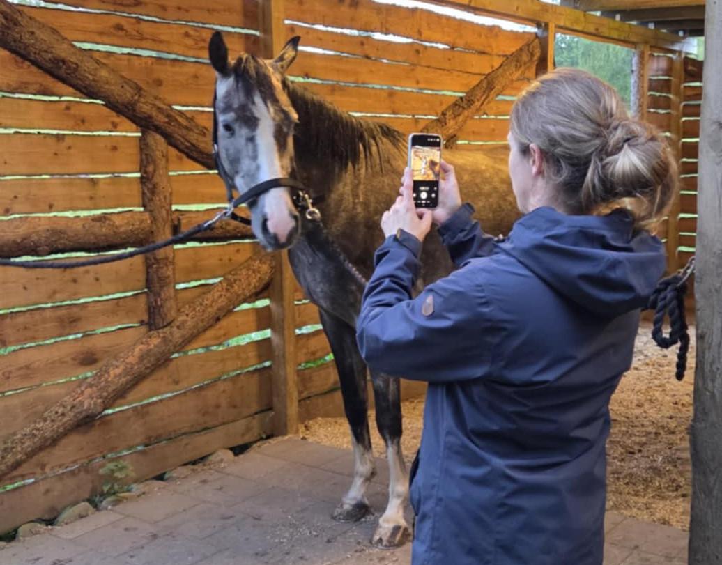 Rikke Gade optager video af en hest til analyse af ansigtstræk.