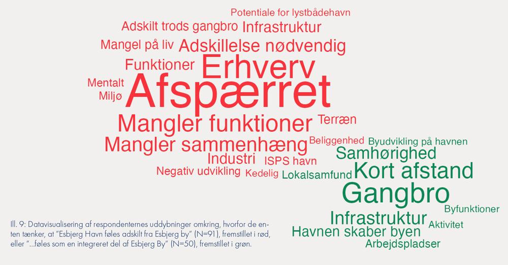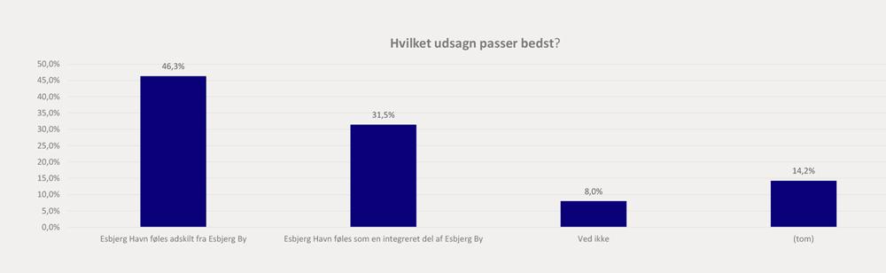 Denne del af undersøgelsen peger på, at mange af Esbjergs indbyggere føler, at havneområdet har potentiale til at blive bedre integreret med resten af byen. Mens nogle beboere værdsætter den industrielle aktivitet for dens økonomiske bidrag, er der også et ønske om, at havneområdet bliver mere tilgængeligt og attraktivt for offentligheden. Der er i undersøgelsen en bred opbakning til idéen om at udvikle flere rekreative områder, caféer, og kulturelle tilbud i havneområdet, som kan bidrage til at gøre havnen til et sted, hvor byens indbyggere i højere grad kan mødes, nyde fritiden og følge med i havnens aktiviteter.