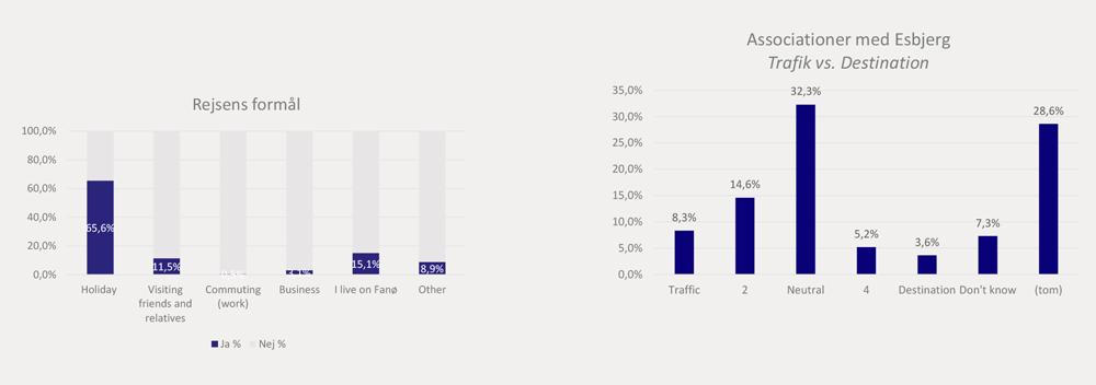 Rejsevaneundersøgelsen viser, at Esbjerg Havn effektivt opfylder sin rolle som et vigtigt transitpunkt, men der er en klar mulighed for at styrke havnens integration med byen og forbedre dens omdømme som en attraktiv destination. Selvom havnen fungerer effektivt som et transitsted, peger undersøgelsen på, at Esbjerg Havn kæmper med at etablere sig som en integreret del af byens identitet. Rejsende, især de, der kun bruger havnen som et gennemfartssted, oplever ikke en forbindelse til selve Esbjerg by, hvilket kan ses som en barriere for at tiltrække flere turister og besøgende, der kunne bidrage til den lokale økonomi.
