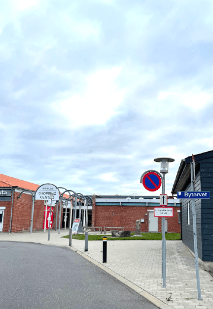 Hanstholms bycentrum er lokaliseret omkring et overdækket shoppingcenter, men området fremstår udefineret og spredt. Flere bygninger, herunder centeret, fremstår slidte og ikke særlig indbydende, hvilket bidrager til en følelse af forfald i byens kerne. Der er mangel på aktivitet i byens centrum, specielt uden for almindelige åbningstider, hvilket forstærker indtrykket af en by i tilbagegang. Der er ingen visuel forbindelse mellem byens centrum og havnen, hvilket forstærker følelsen af adskillelse mellem disse to vigtige dele af Hanstholm. Fra byens centrum kan man ikke se havnen eller havnerelaterede aktiviteter, hvilket gør det svært for besøgende at få en oplevelse af, at Hanstholm er en aktiv havneby. Hanstholm ligger relativt afsides, og der er begrænsede infrastrukturelle forbindelser til byen, især i form af motorveje og kollektiv transport. Dette gør det udfordrende at tiltrække besøgende og potentielle nye beboere til området. Byens placering og infrastruktur er en væsentlig barriere for dens fremtidige udvikling.