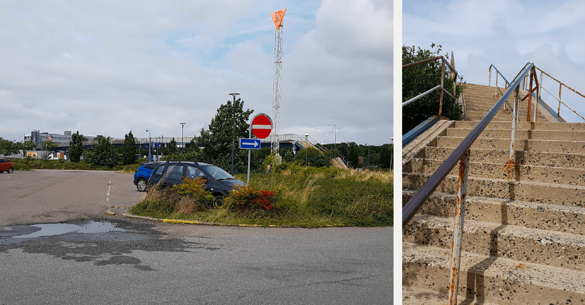 Når man går over Diget fra Havnegade ned mod trafikhavnen ser området ret aflukket ud som fodgænger. Der holder parkerede biler og både til højre og venstre ses en lukket gitterport.