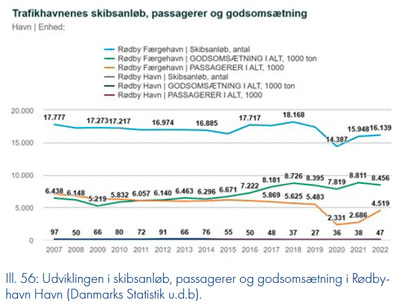 I nyere tid har Rødbyhavn stået over for udfordringer som følge af ændrede transportbehov og den stigende betydning af miljømæssige hensyn. Dog har havnens strategiske beliggenhed fortsat været en styrke, især med planerne om Femern-forbindelsen, som forventes at have en stor indvirkning på både byen og havnens fremtidige udvikling. Denne faste forbindelse til Tyskland vil yderligere styrke Rødbyhavns position som et centralt transportknudepunkt i Europa. Det historiske overblik i rapporten viser på den måde, hvordan Rødbyhavn har udviklet sig fra et lille fiskerleje til en central havneby med stor mobilitetsstrategisk betydning. Byens historie er præget af kontinuerlig udvikling og tilpasning til skiftende transportbehov, hvilket har gjort den til en vigtig aktør i både national og international handel og transport. Rødbyhavns fremtidige rolle som del af Femern-forbindelsen understreger byens vedvarende betydning i regionen.