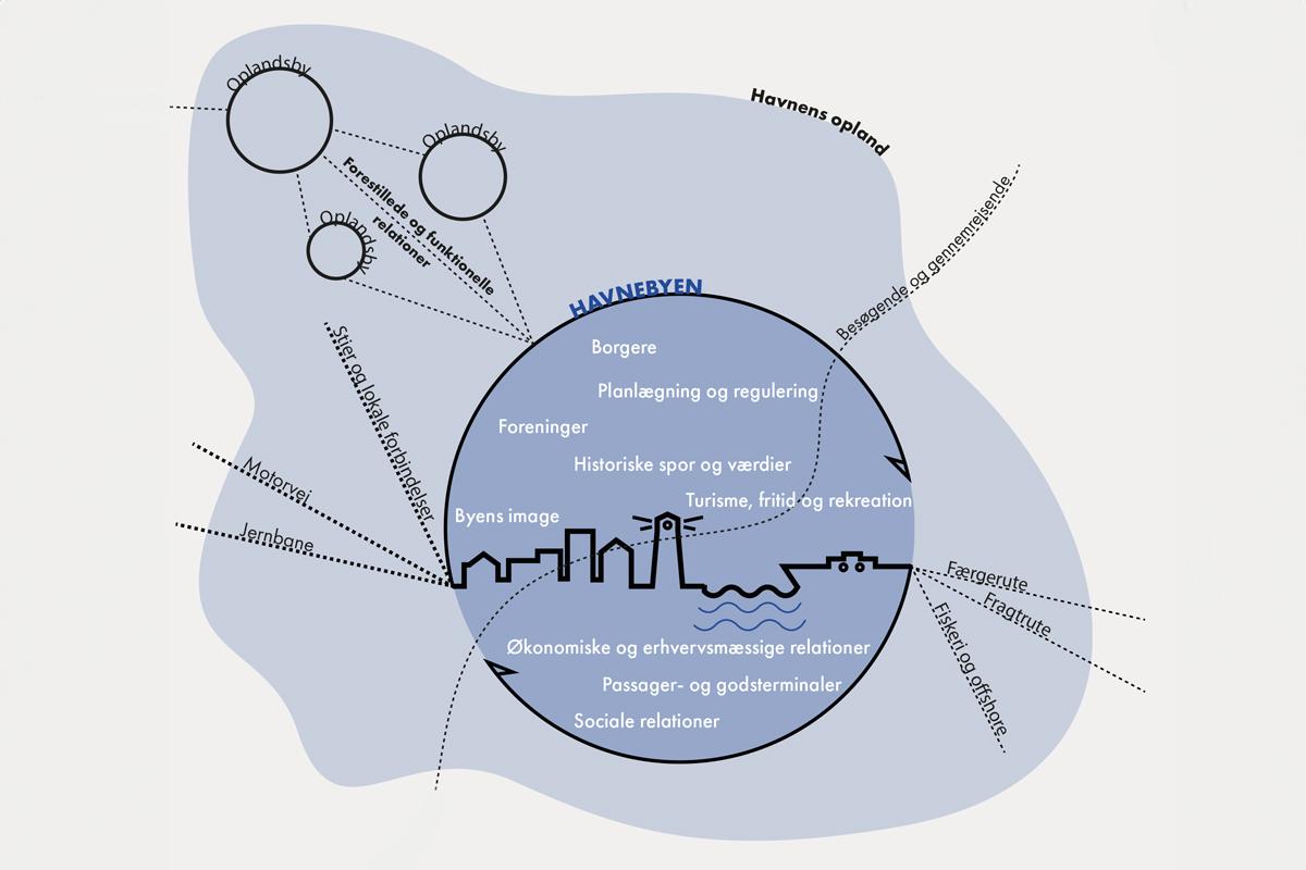 I en samfundsmæssig optik kan havne derfor forstås som vigtige funktionelle overgange mellem landsiden og vandsiden og som knudepunkter for vigtige samfundsmæssige funktioner.