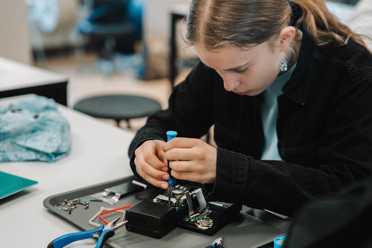 Ved at deltage i en repair camp lærer eleverne blandt andet, hvad produkter består af, brug af værktøj, og hvordan man reparerer dem. Vi stiller værktøj og mandskab til rådighed, så eleverne selv kan prøve kræfter med at åbne og reparere et produkt. (foto: William Brændstrup)